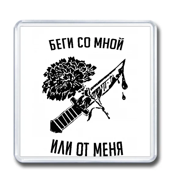 Магнит 65×65 "Беги со мной или от меня"